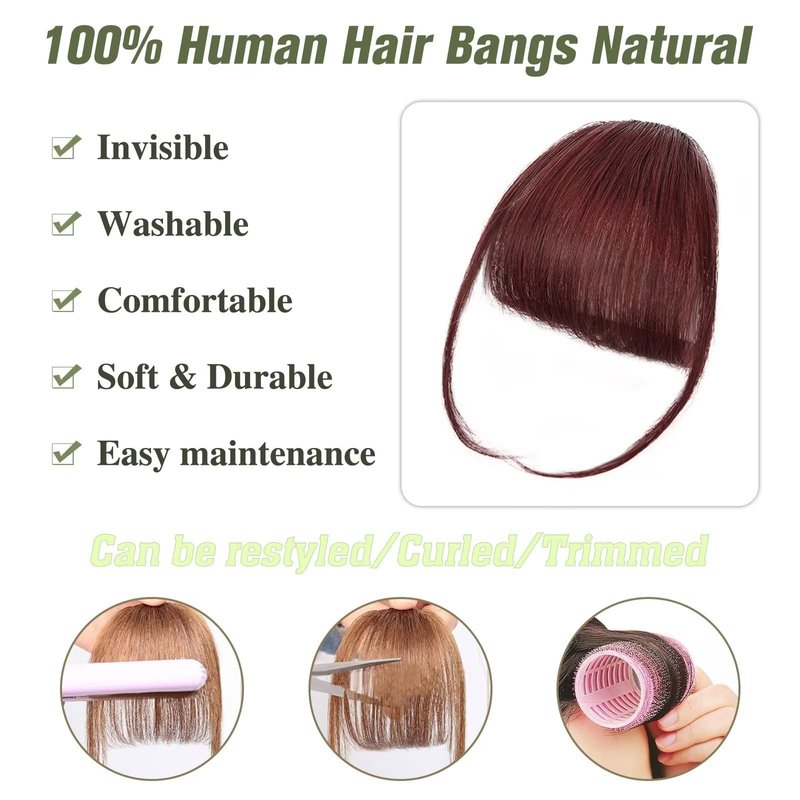 - ➤100% Human Hair Bangs: clip in bangs are made from 100% human hair that, Soft and fluffy, light and comfortable, creating realistic natural effects. Real Human hair bangs allow you to use the curler or straightener to change the styling