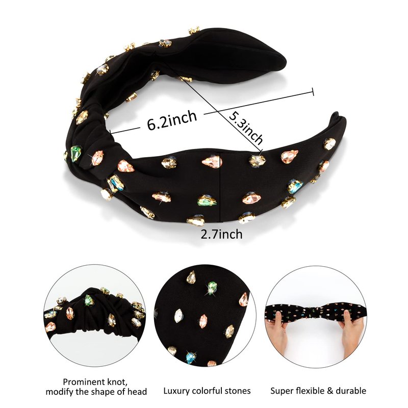 - Chic knotted headband for women & girls: classic knotted headband embellished with colorful stones, modify shape of head, chic and eye-catching, make you different.