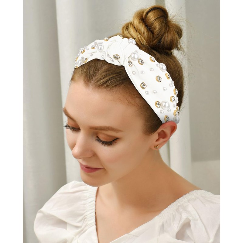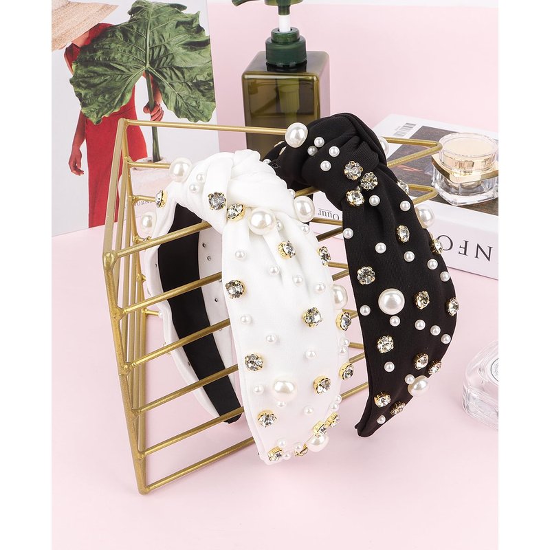 - Luxury knotted headband for women & girls: classic knotted headbands embellished with sparkly rhinestones and glossy pearls, modify shape of head, chic and eye-catching, make you different.
