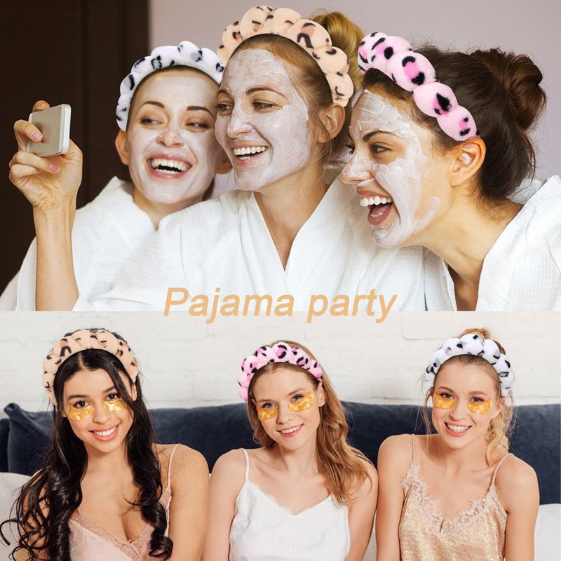 Wecoe 3pcs Skincare Headband For Washing Face Spa Makeup Face Wash Headband Cute Pink Khaki White Cheetah Leopard Printed Puffy Sponge Bubble Headband Hair Accessories For Women Girls Kids Teens Gifts