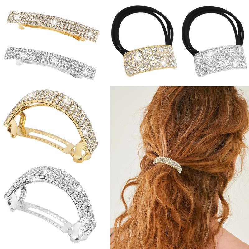 - INTIMATE DESIGN: The hair barrettes and decorative part of hair ties are made of durable alloy, carefully electroplated and decorated by hand with shining rhinestones.