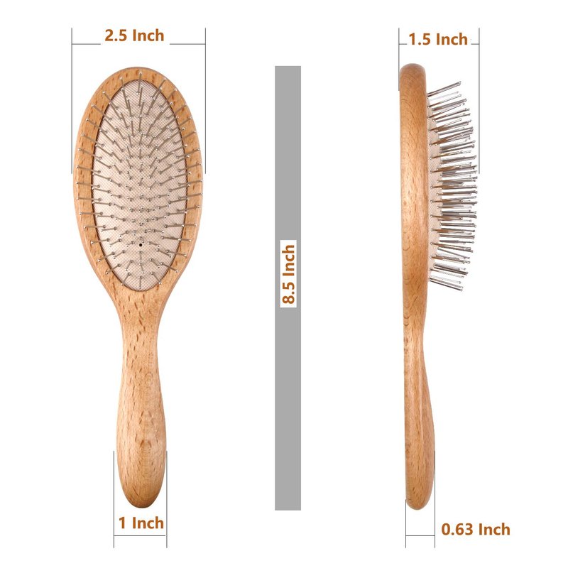 - ❤ Why Choose Us? Our unique wooden paddle hair brush with steel pins know your pain point of your hair brush / combs, can give you a solution to help you say Goodbye to rubber bed broke down, becoming misshapen, cracked, no good hold. Without any advertising on the handle