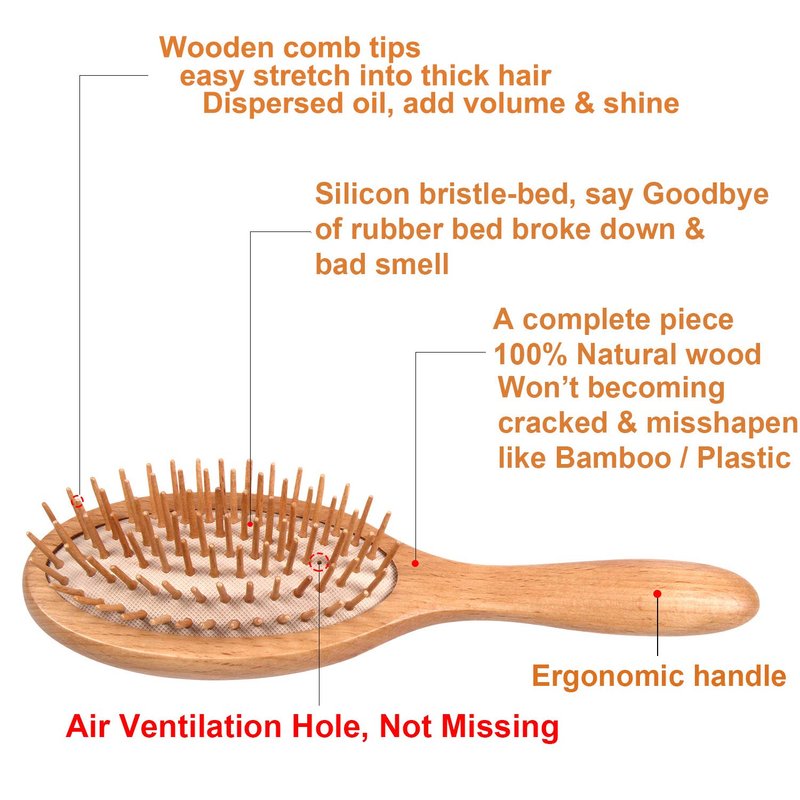 - ❤ Why Choose Us? Our unique wooden paddle hair brush with steel pins know your pain point of your hair brush / combs, can give you a solution to help you say Goodbye to rubber bed broke down, becoming misshapen, cracked, no good hold. Without any advertising on the handle