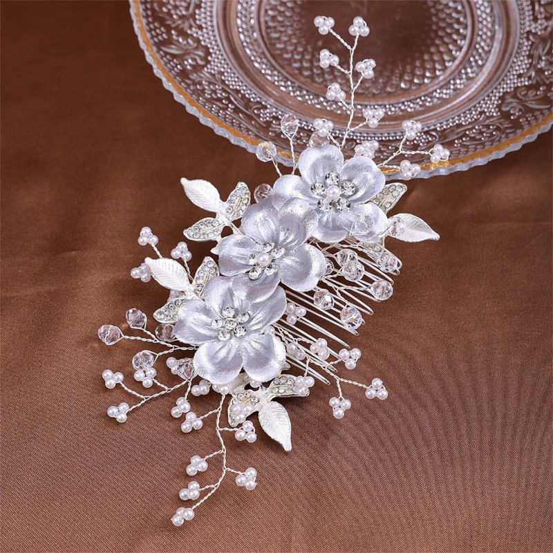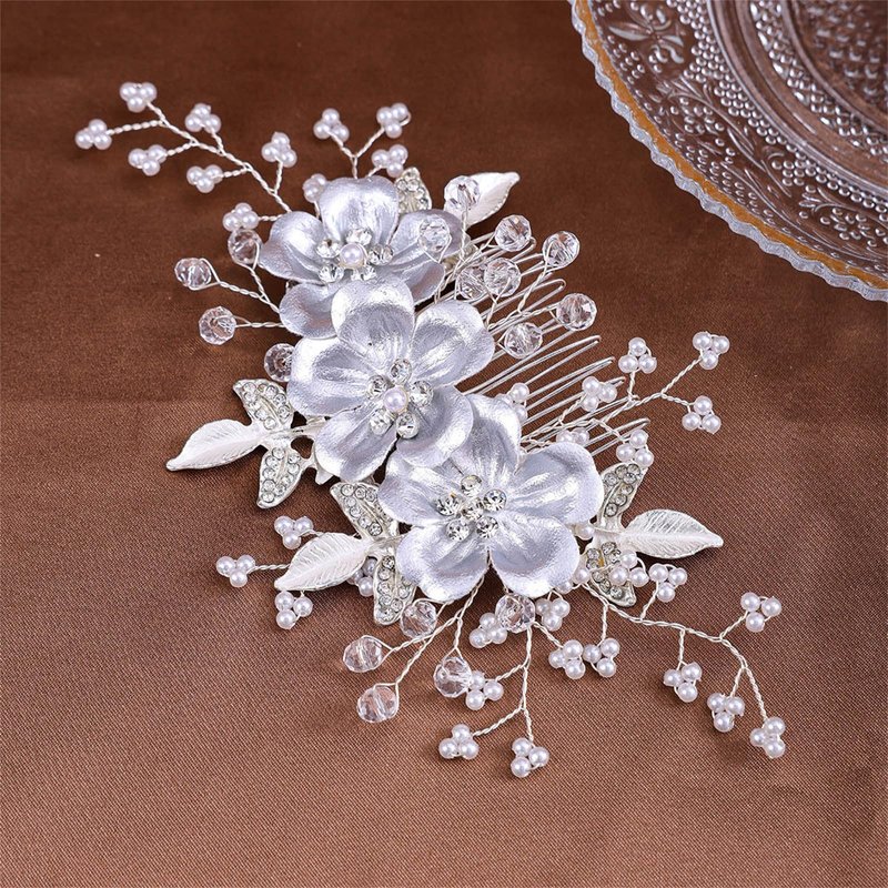 Wedding Hair Accessories Bridal Headpiece Hair Comb for Women Decoratives - Silver Flower Hair comb for Women Wedding Hair Accessories