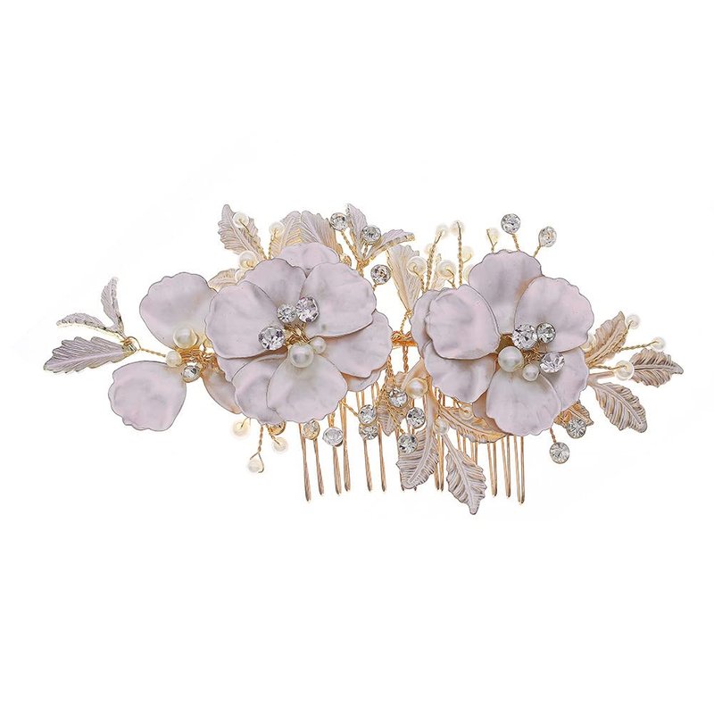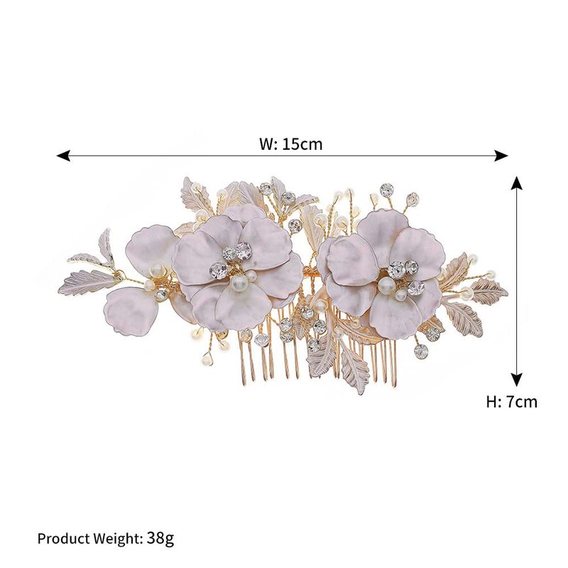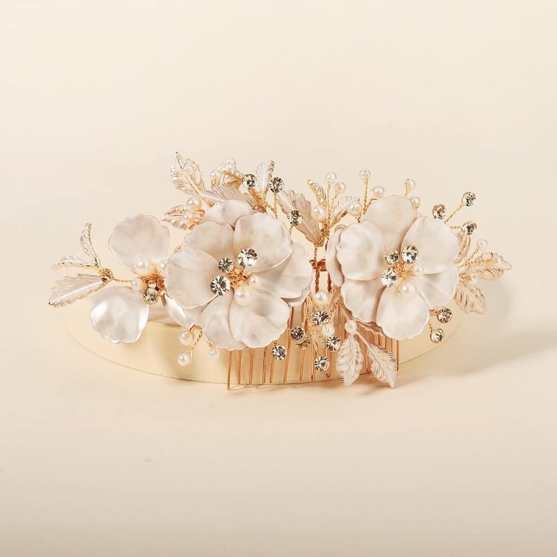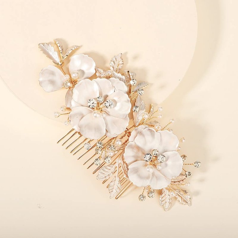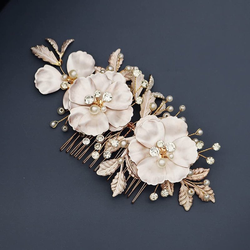 Wedding Hair Comb Gold Color Flower Bridal Handmade Wedding Hair Accessories for Brides and Bridesmaid