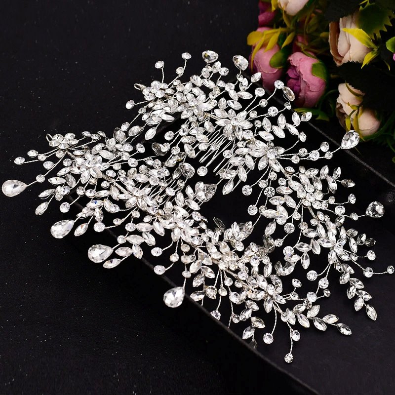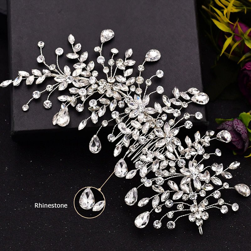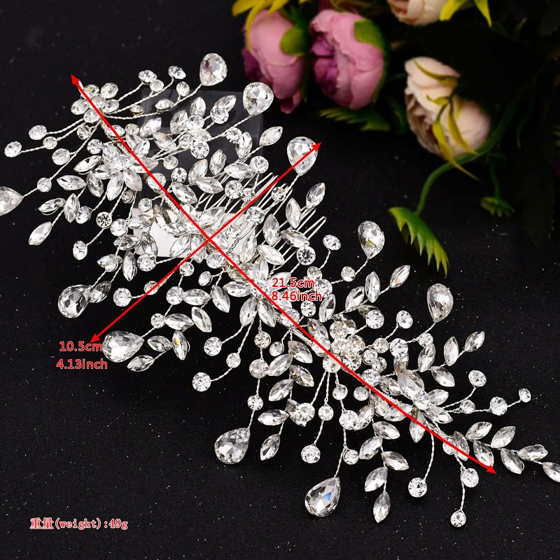 Wedding Tiara Bridal Hair Piece Silver Rhinestone Hair Accessory For Ladies,Rhinestone Bridal Bridesmaid Hair Comb Accessories(Silver One on the Right)