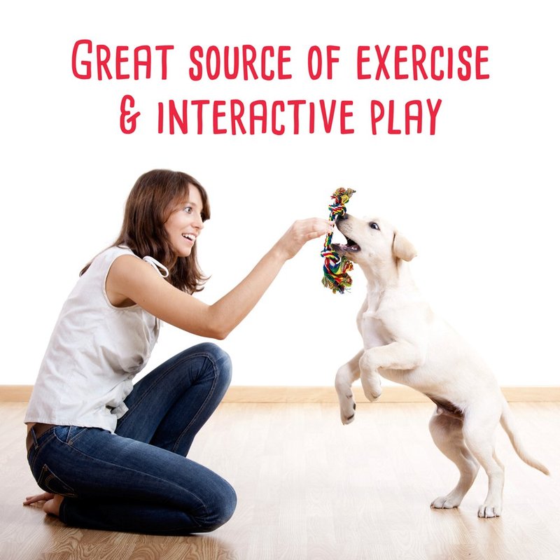 Your dog will love to chew tug and fetch our colorful and natural knotted cotton bone rope. And while you and your dog play the real cotton fibers act just like floss promoting doggie dental health by cleaning teeth and gums and removing plaque Rope bones are ideal active dog toys and a great source of exercise and interactive play that is especially vital for growing pups. Ten inches long 6 in. knot to knot this rope is perfectly sized for puppies and smaller breeds of dogs. For larger breeds try out our TossnFloss Fling RopeFeatures. Cotton Flossin Rope Bone Dog Toyroduct. Product Type - Dog Toyroduct. Material - Cotton