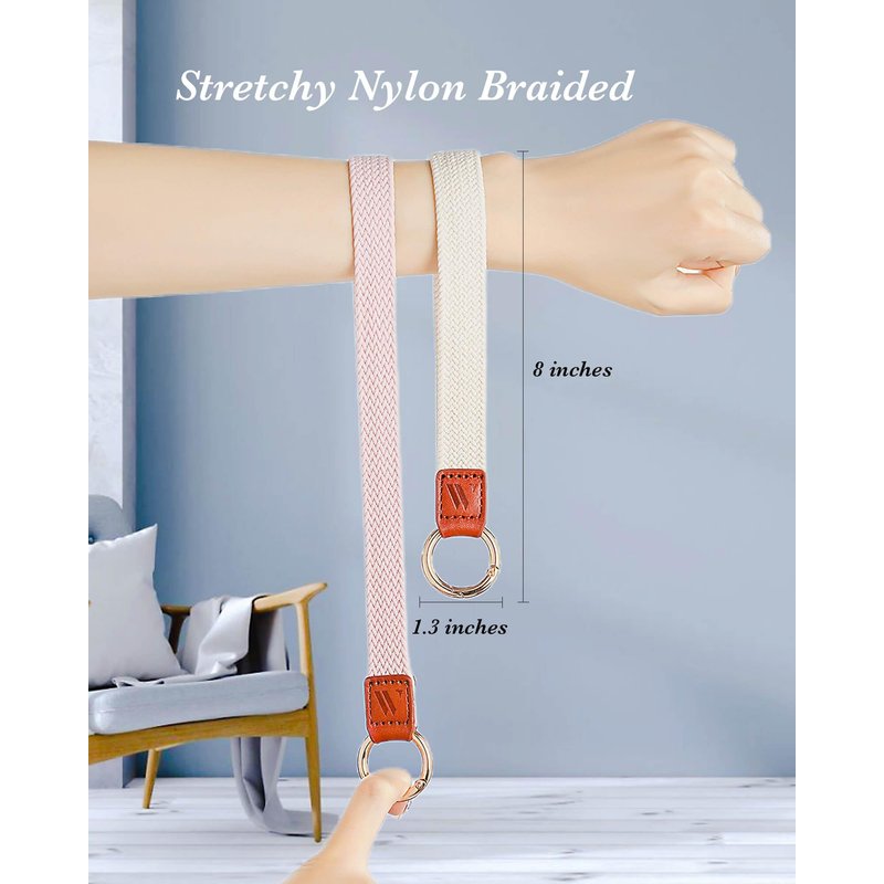 - 【STRETCHY NYLON MATERIAL】This wrist keychains for women is made of a soft and stretchy nylon weave strap and high-quality genuine leather, ensuring long-lasting use without causing any skin allergies. The wrist keychain features a high-quality alloy metal buckle that adds durability and lightweightness, so you won't feel weighed down.