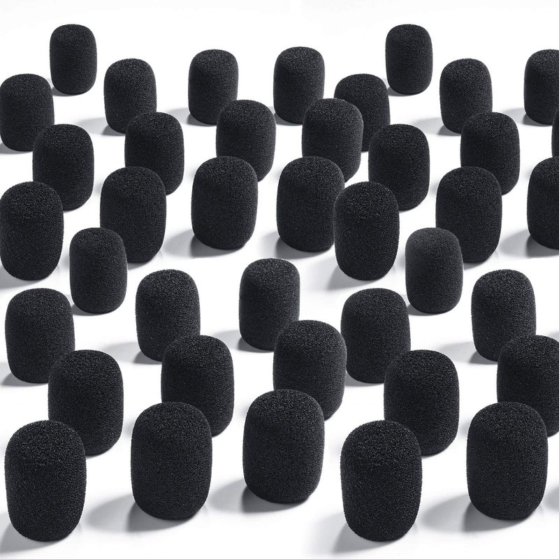 Weewooday 50 Pieces Foam Microphone Windscreen Mic Covers Foam Protection for Small Lapel and Headset Microphones, Black