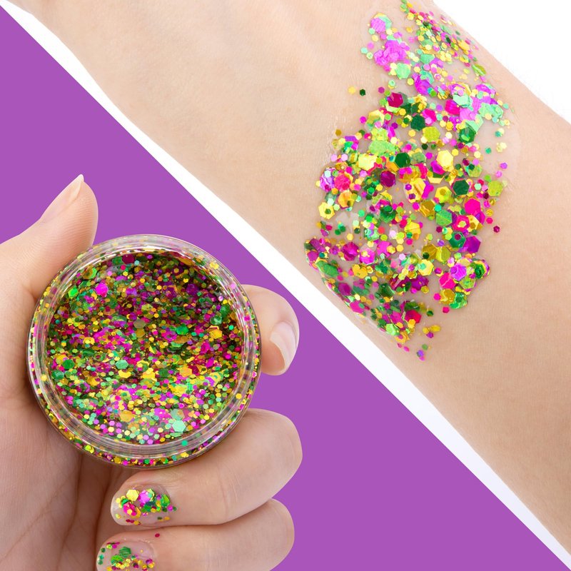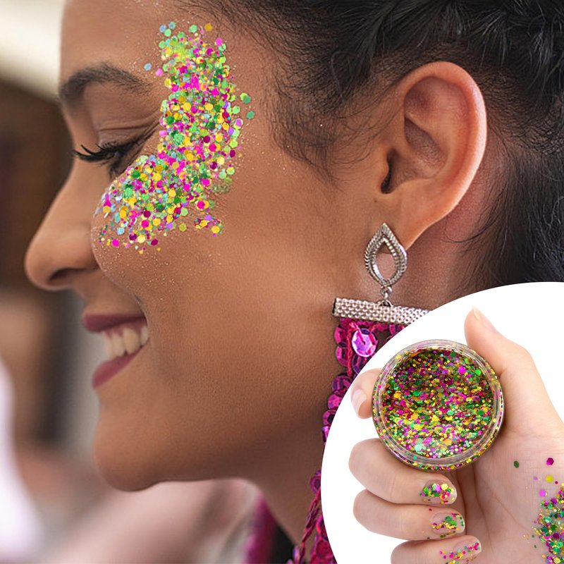 - Widely applicable: Mardi Gras Glitter gel can be applied to all parts of the body, including the face, hair and nails, to make you shine from head to toe. It is a perfect choice for any outfit, makeup and hair style, to show off your fashion and creativity