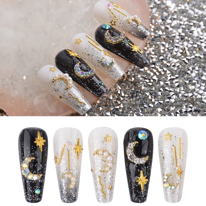 - 💕【Widely Application】The metal moon nail rhinestones charms are great for both professional nail specialists and nail art learners. It can be as a gift to friends, also can be used in nails, crafts, shoes, clothes, cups, mobile phone cases, hair clips, earrings, jewelry, etc.