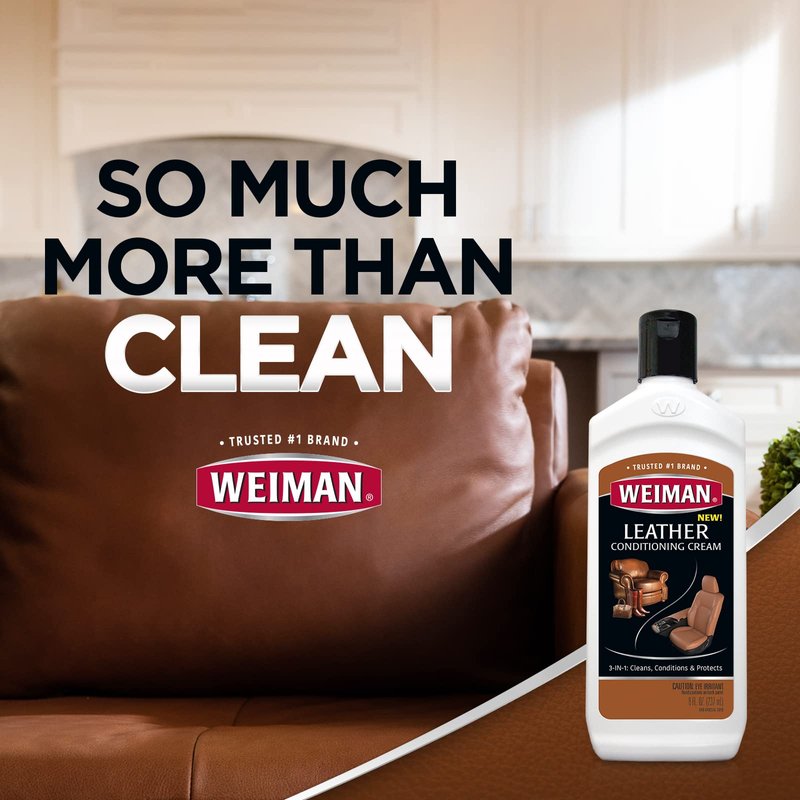 Weiman 3 in 1 Deep Leather Cleaner & Conditioner Cream - Restores Leather Surfaces - Use on Leather Furniture, Car Seats, Shoes, Bags, Jackets, Saddles