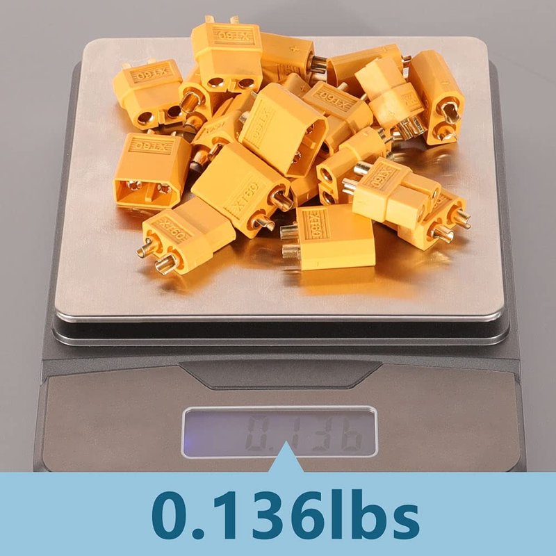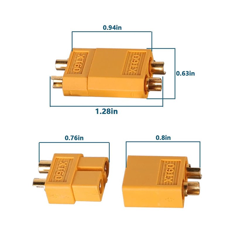 - XT60 Connector can handle over 60A current for extended periods without exceeding 80 Celsius temperature, XT60 Drone Connectors behave very well.