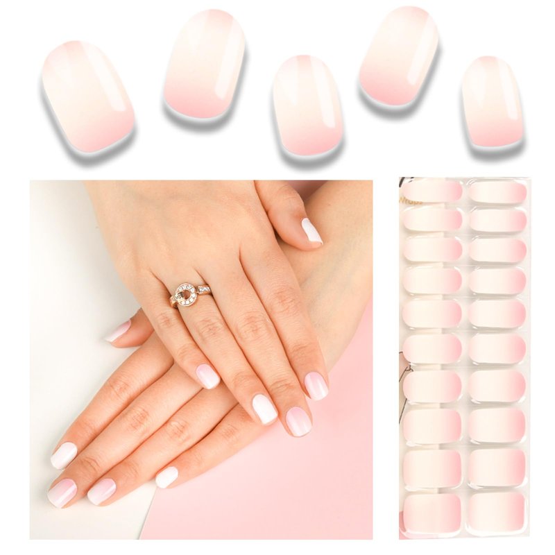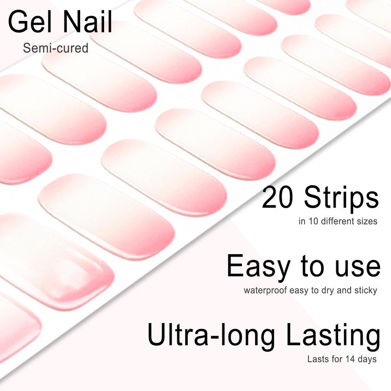 Wekcekcek Semi Cured Gel Nail Strips, 20pcs Gel Nail Polish Stickers, Pink Gel Nail Stickers - Work with Any UV Lamp, Long Lasting Full Nail Wraps with Nail File and Stick