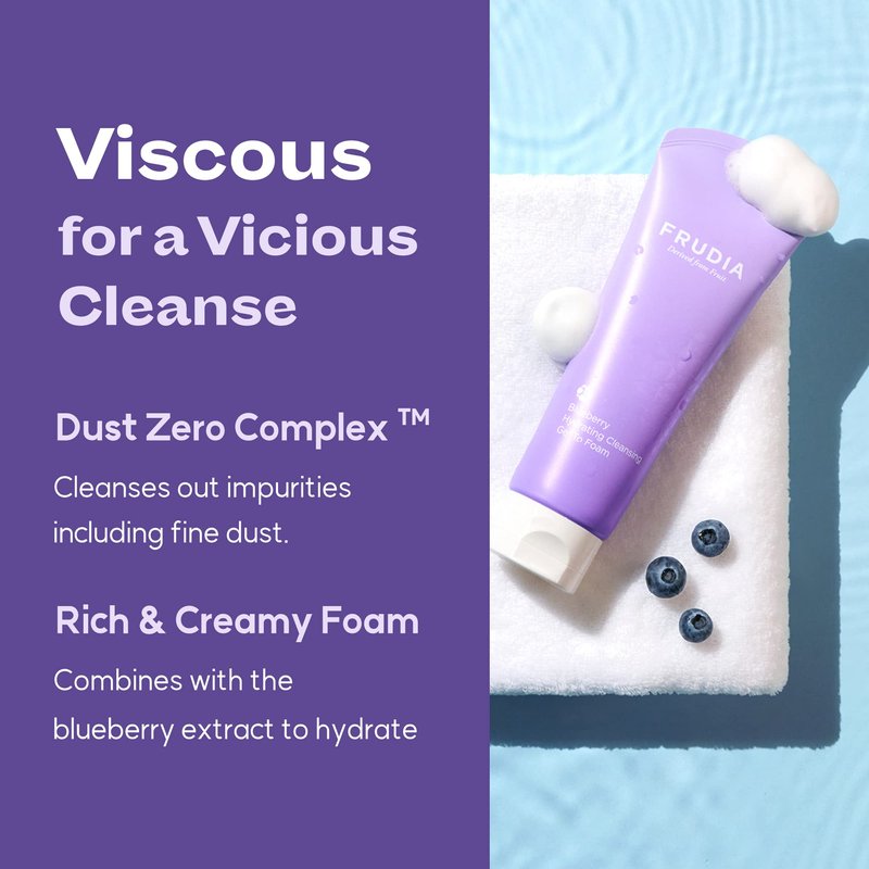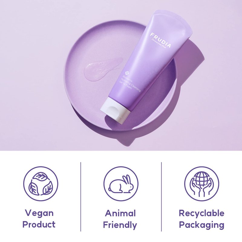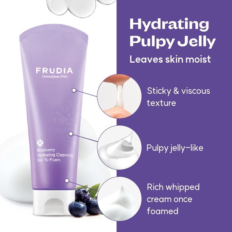 WELCOS FRUDIA Blueberry Hydrating Cleansing Gel to Foam | Hydrating Facial Cleanser for Men & Women | Face Wash for Dry Skin Oily Skin & Sensitive Skin Facial Skin Care Products (Pack of 1, 4.9 fl oz)