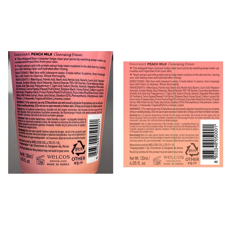 WELCOS KWAILNARA Milk Facial Cleansing Foam (120 ml / 4.06 Fl. oz) (Peach)