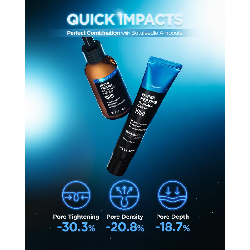- COMPREHENSIVE PORE IMPROVEMENT: Achieve remarkable results with this cream’s unique formula. It enhances pore volume by 39.6%, reduces pore number by 22.6%, and improves pore depth by 18.7% when used alongside the Hyper Peptide Botuleedle Ampoule. These improvements contribute to a refined skin texture and tighter pores.