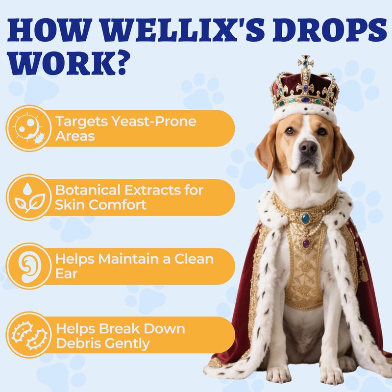 • Supports Overall Health - Wellix yeast dog ear drops' herbal remedy may effectively help with dog ear itch relief and discomfort caused by yeast overgrowth, while restoring your furry friend's health and vitality, making it a dog essential