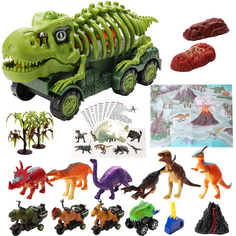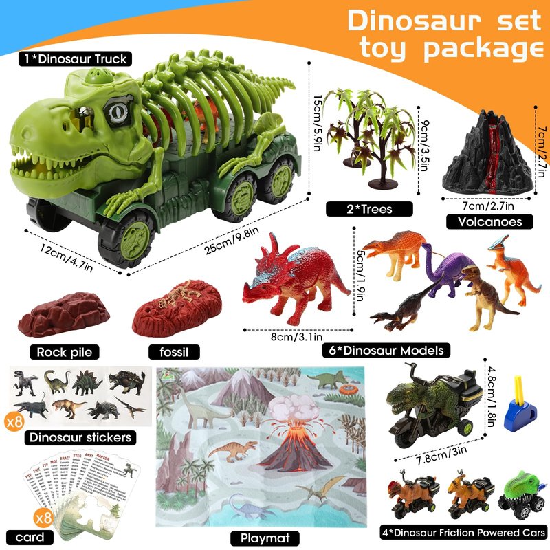 - DINOSAURS THAT RIDE MOTORCYCLES:Maybe your children have seen different types of dinosaur cars, but this ride a motorcycle dinosaur is definitely one of the brightest toys in 2023,This Dinosaur Truck Playset includes 1 large Dinosaur fossils transport truck, 1 Ejector Car, 3 pull back dinosaur cars, 6 realistic dinosaur figures, 1 jurassic world activity playmat and more, It's a fantastic gender-neutral toy,This toy is not just for boys, it's for all dinosaur lovers