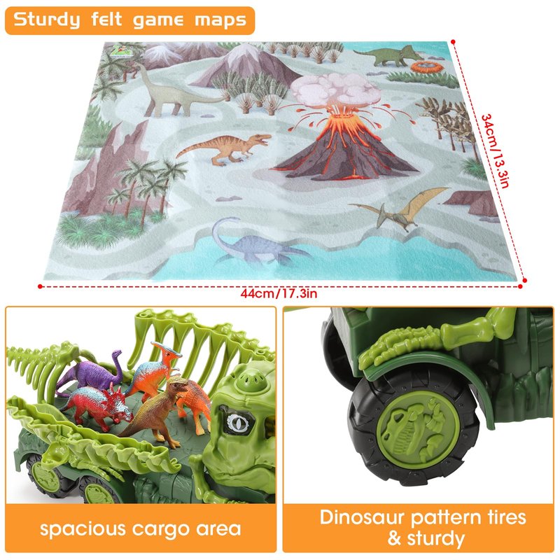 - REALISTIC TYRANNOSAURUS DINOSAUR TRUCK:The reason why we know that dinosaurs lived on earth is because of the discovery of dinosaur fossils,The combination of dinosaurs and trucks is a dream come true for kids.This dinosaur toys for kids 3-5 5-7 good choice, It's like the perfect mash-up of their favorite things! The 3-in-1 dinosaur fossil carrier truckis the star of the show,The truck's cool design and spacious cargo area make it perfect for transporting their little treasures