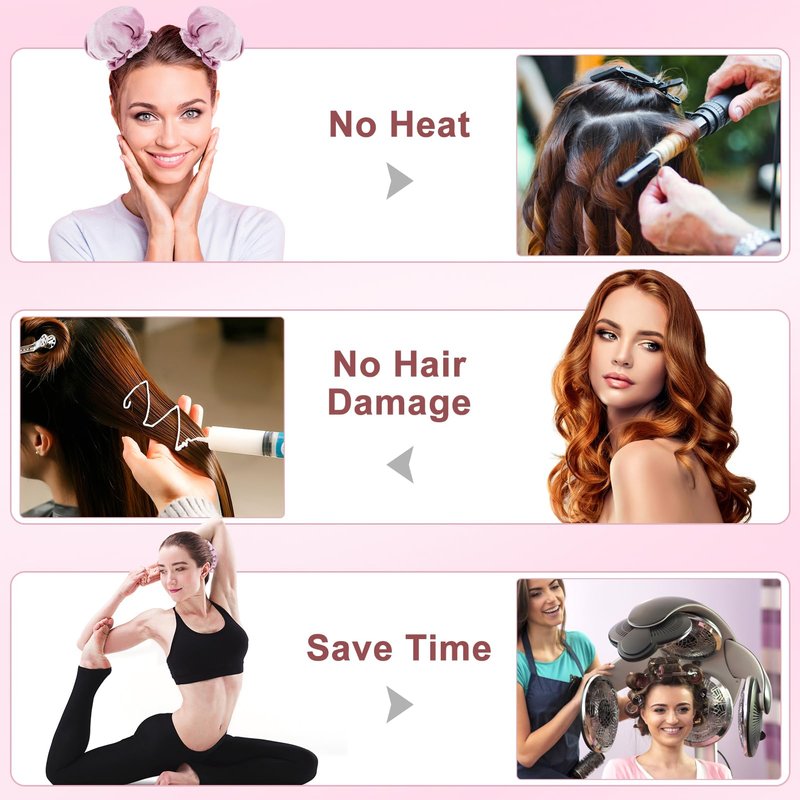 - 【Easy to Use】--- Just simply wrap your hair around the curling rod and secure the button to hold it in place, then place the cap over your curled hair, wait 3-6 hours or sleep with the curlers on until you wake up the next morning with gorgeous, salon-worthy curls, add styling sprays to make the curls last longer.