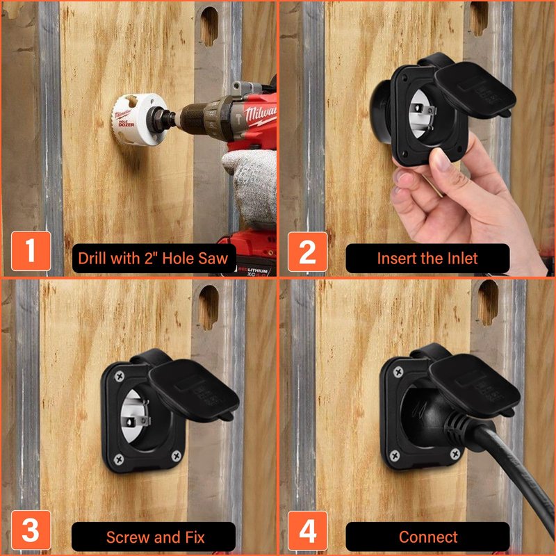 - 【15 Amp Flanged Inlet】: No oxidation for the Nickel coated copper pole on the plug, made of premium copper and Nylon plastic to avoid the damage of UV degradation and chemicals, rugged and durable for indoor and outdoor.