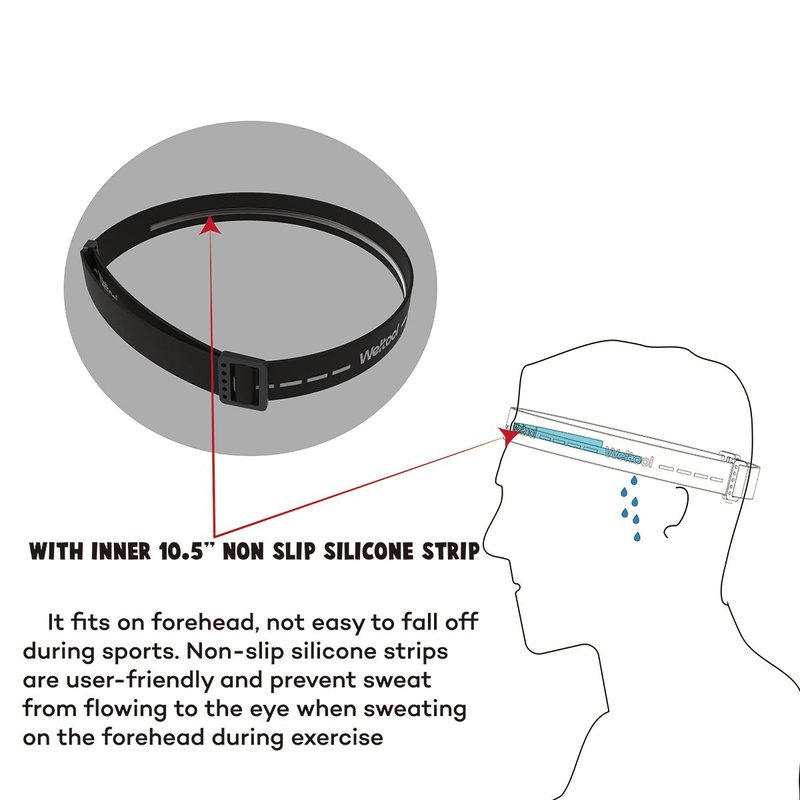 • MATERIAL: High-elastic Band (stretchable to double length), 1 inch Width, Specially Crafted, Not easy pilling. With inner 10.5" non-slip silicone strip, it fits on forehead, not easy to fall off during sports. Non-slip silicone strips are user-friendly and prevent sweat from flowing to the eye when sweating on the forehead during exercise