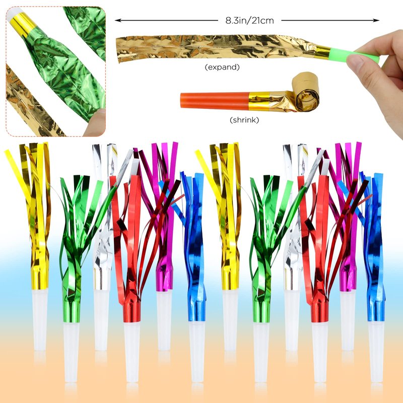 Weoxpr 144pcs Two Kinds of Noisemakers Blowouts Party Horns, Bulk Toys, Birthday Party Favors, New Years Party Noisemakers, Party Accessory, Prizes for Kids, Party Whistles and Streamers