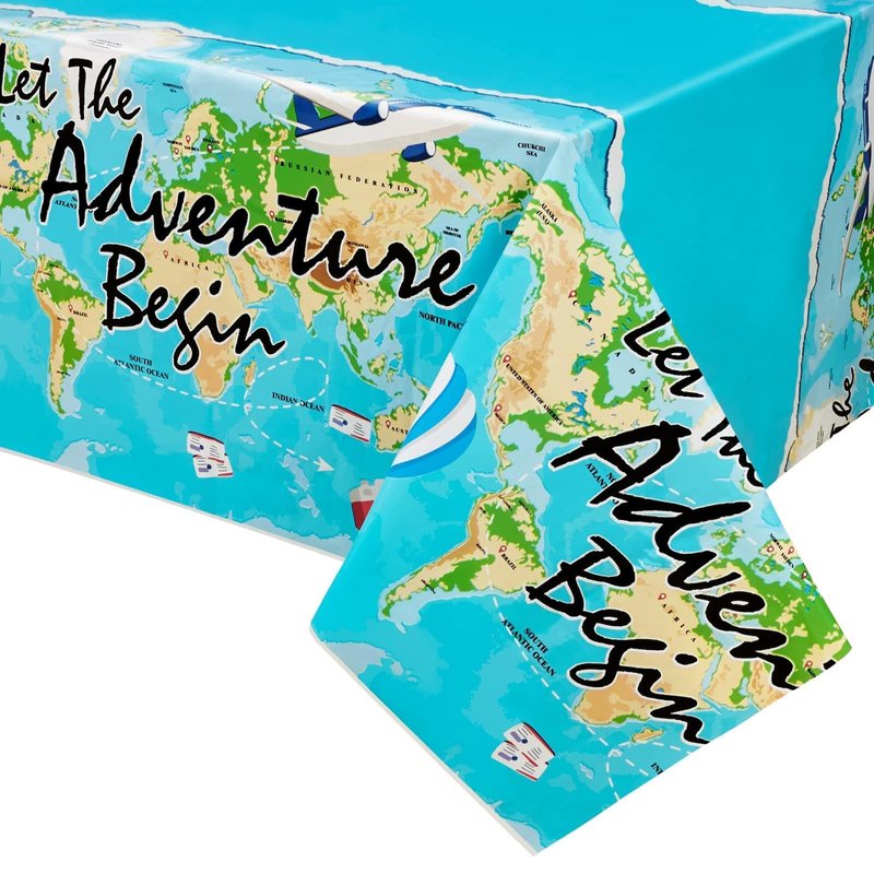 - 【VARIOUS OCCASION】This travel theme tablecloth is perfect for a variety of occasions, including travel/bon voyage/adventure-themed parties, retirement/graduation/birthday parties, school events, baby shower, and more. Plus, this party tablecloth is the perfect complement to other same themed party supplies. Get ready for hours of entertainment and laughter!