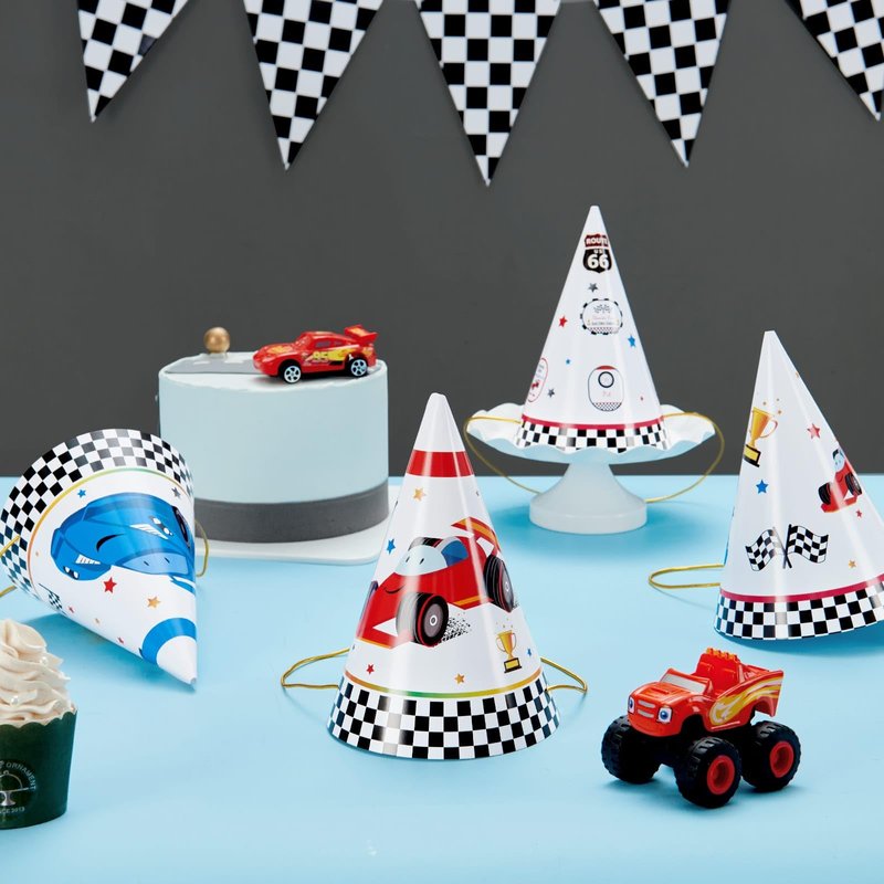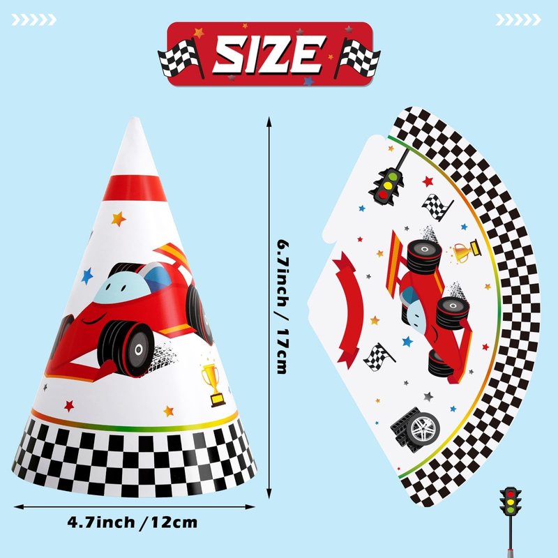 - 【RACE PARTY HAT】 : These race car party hats designed in 6 different patterns, catering to the preferences and dress code of the party guests. The birthday hats features colorful race car elements, add excitement to your boy's party and leave an unforgettable impression on your guests