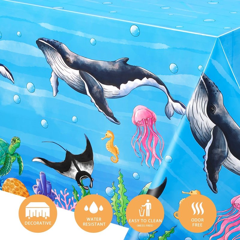 - 【OCEAN ANIMAL TABLECLOTH】- Prepare to dive into a wonder undersea adventure as you decorate your party venue with this ocean animal theme table cover. The sea theme party supply will provide an immersive Ocean-themed atmosphere.