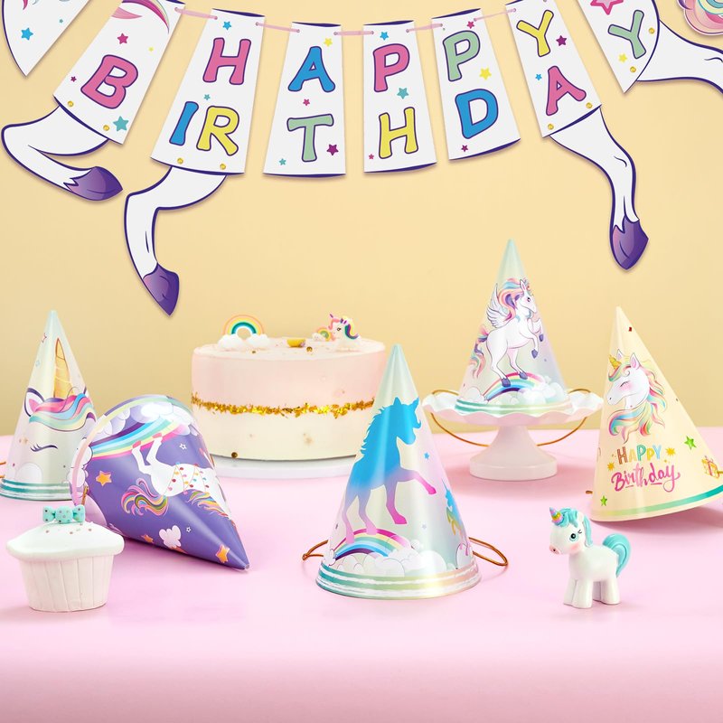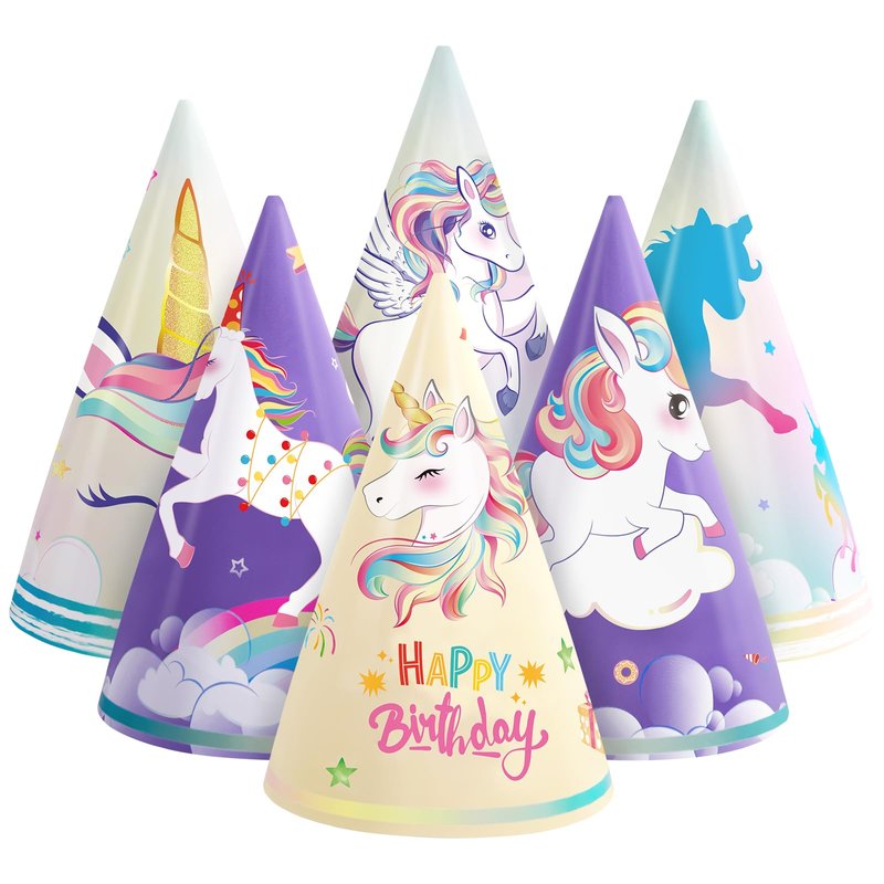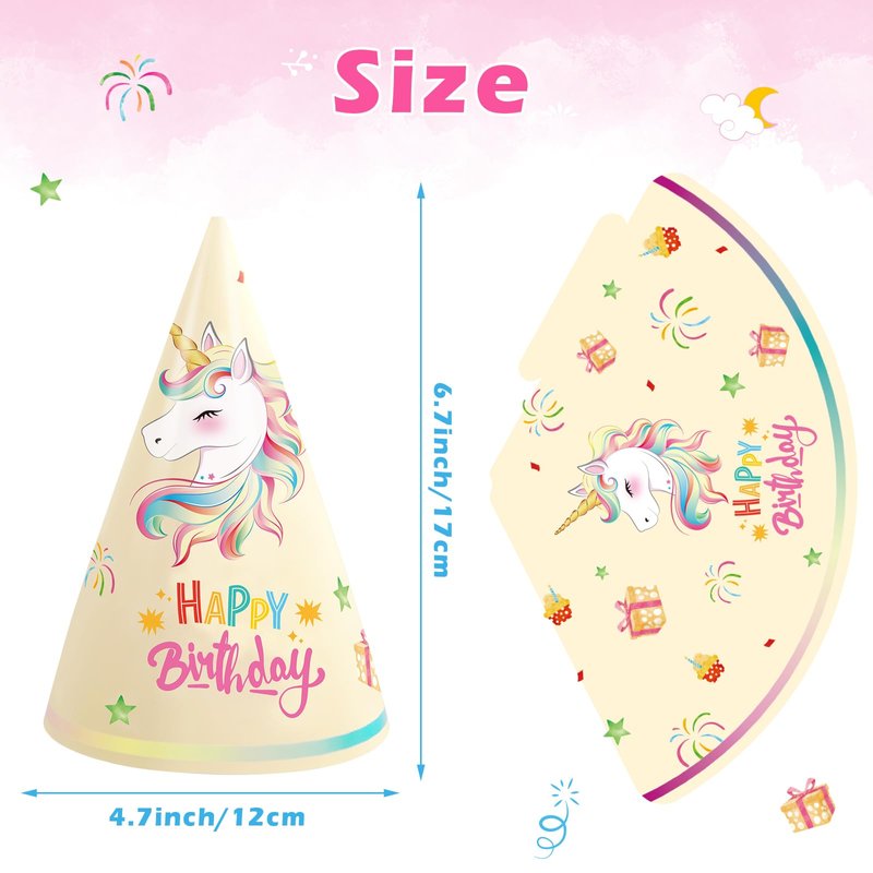 - 【UNICORN PARTY HAT】 : These colorful unicorn party hats designed in 6 different patterns, catering to the preferences and dress code of the party guests. The birthday hats features fantasy unicorn elements, add a touch of whimsy to your girls party and leave your guests with an unforgettable impression