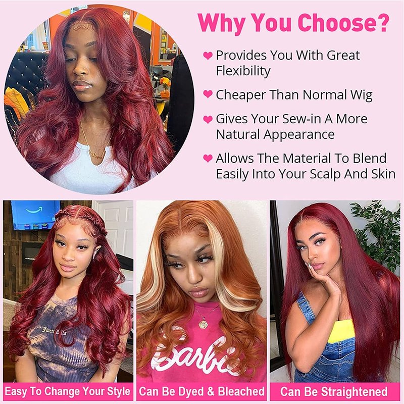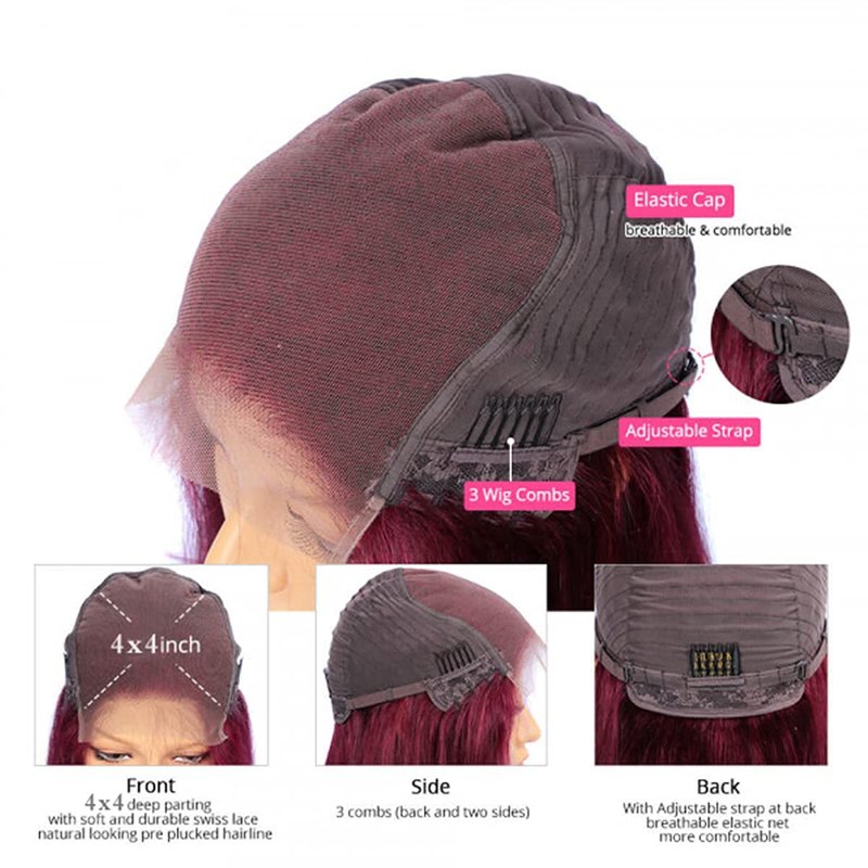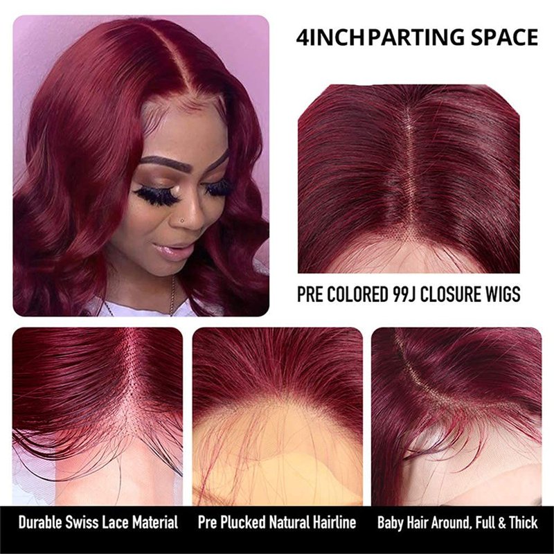 - Color: Burgundy Body Wave 4*4 Closure Wigs