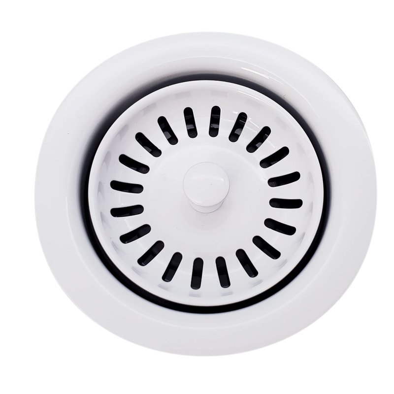 Westbrass D2082S-50 3-1/2" Extra-Deep Collar Kitchen Sink Waste Disposal Flange & Strainer Stopper, Powder Coat White