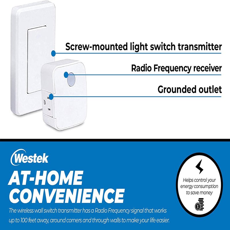 - At-Home Convenience – The wireless wall switch transmitter has a Radio Frequency signal that works up to 100 feet away, around corners and through walls to make your life easier. Saves energy consumption and money