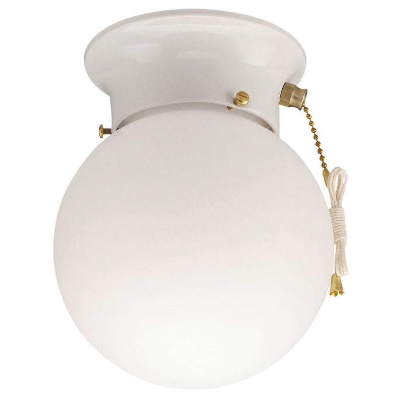 - One-light flush-mount interior ceiling fixture with pull chain