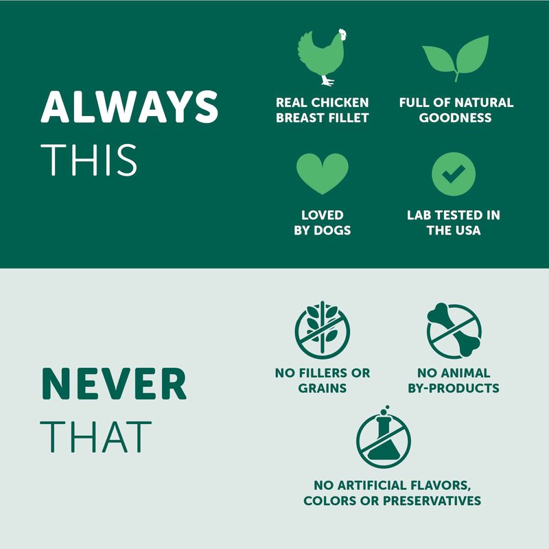 - FLAVORFUL - Packed with nutritious goodness and natural chicken flavor, your dog will love the aroma, texture, and taste. These tenders can easily be broken into smaller pieces for a great low-fat training reward, making them a perfect treat for dogs of all ages, breeds, and sizes.