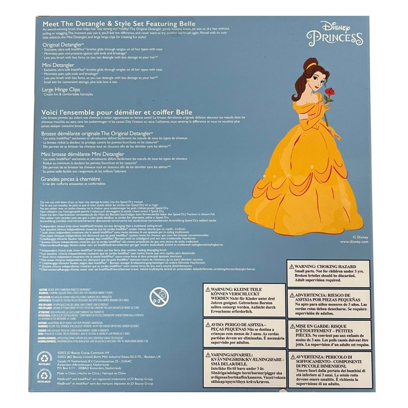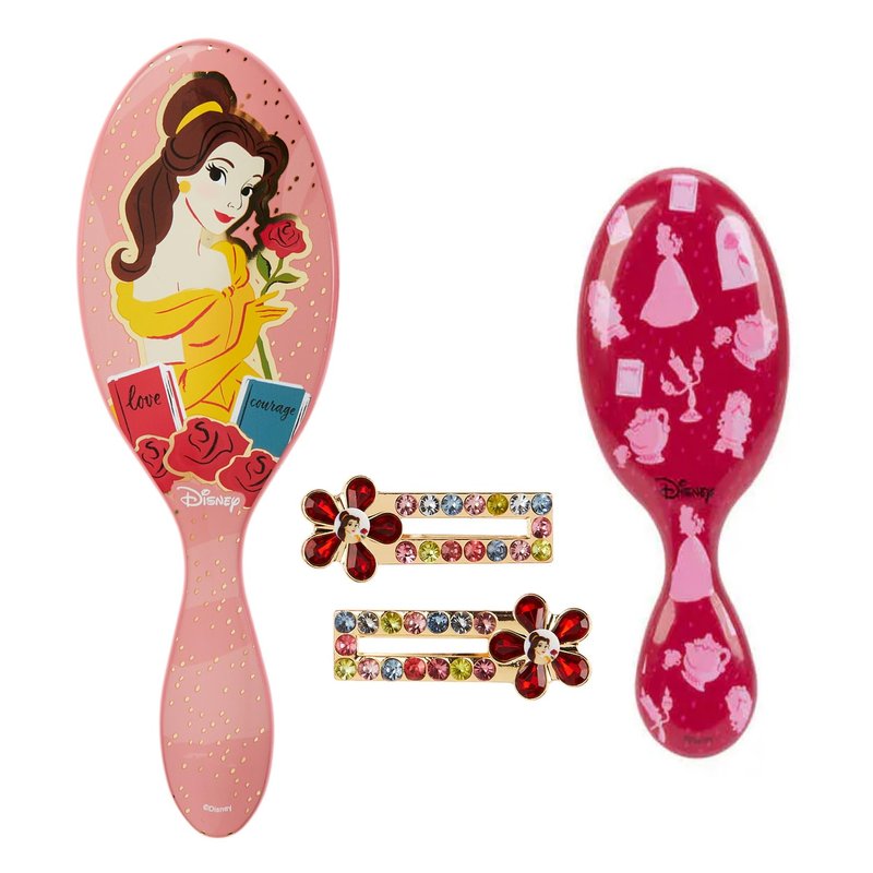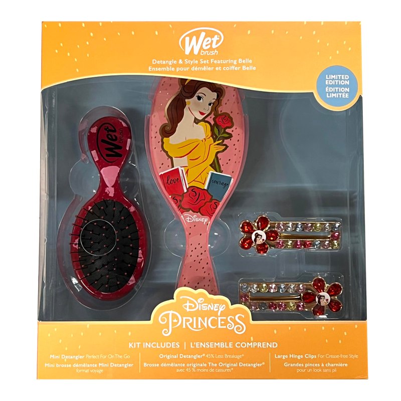 Wet Brush Original Detangler Brush Kit - Belle, Princess 4-Piece Set - All Hair Types - Ultra-Soft Bristles - for Women and Girls - 2 Brushes and 2 Clips