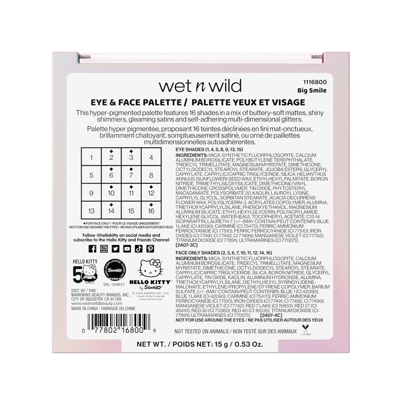 wet n wild Hello Kitty Eye & Face Palette, 2 Bold Richly Pigmented Palettes, Multi-Functional Buildable and Blendable Formula, Cruelty-Free & Vegan - Big Smile