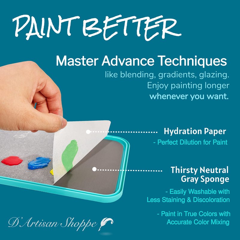 - Unique multiuse XL triple paint tray palette. Painting palette for artists, or wet pallete with 2 sponges & 50pc (Original) or 100pc (Plus) palette paper. Upgrade version gives you the ability to seal close the top and bottom trays just like any other wet palette. Middle tray remains as a paint mixing palette tray. Keeps paint blends wet with consistent values.