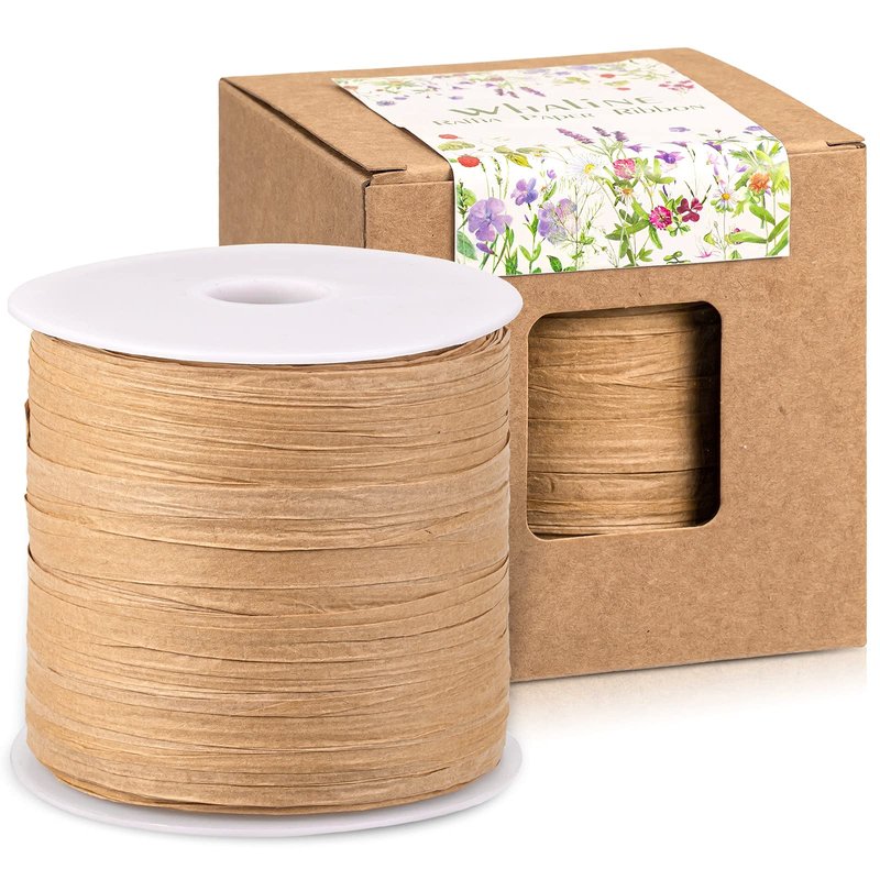 Whaline 229 Yards Raffia Paper Ribbon Christmas Kraft Craft Packing Paper Twine for Festival Gifts, DIY Decoration and Weaving, 1/4 inch Width