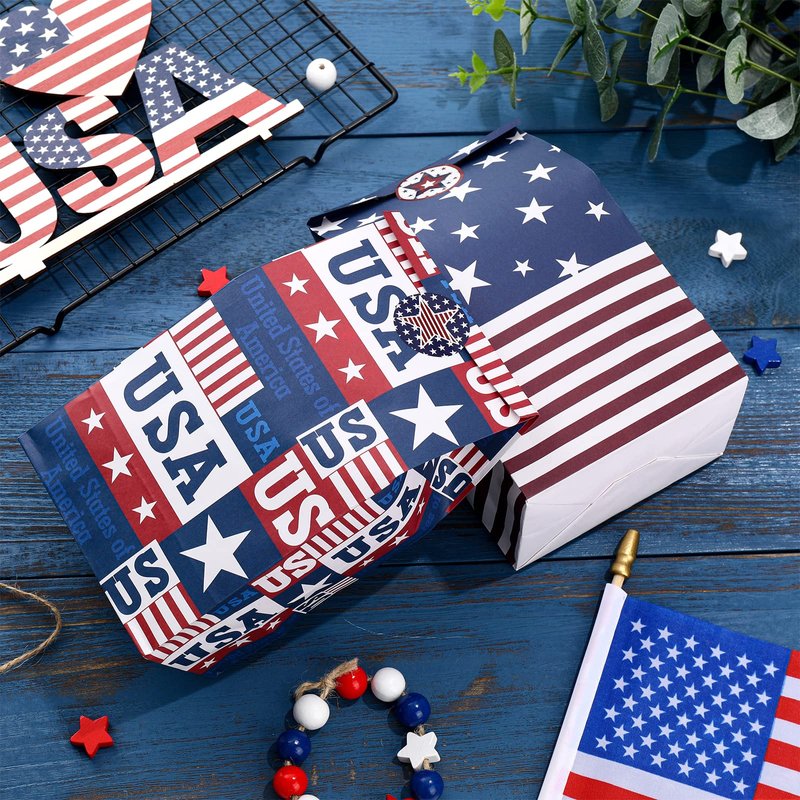 - Premium Material – Our Independence Day treat bags are made of premium white Kraft paper materials, and printed with eco-friendly ink, safe and recyclable, strong and no smell, can well store stuffs, perfect for Christmas party favors.