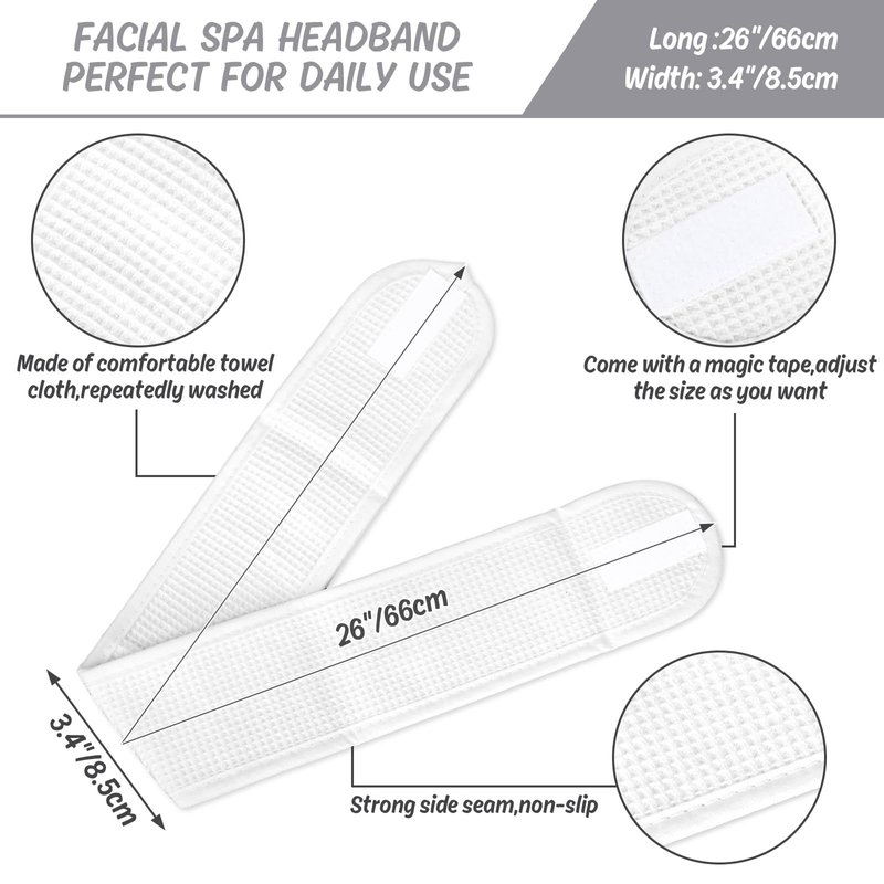 - Measurement - These terry headbands are 26inch length by 3.3inch width, one size fits most, letting your messy hair no longer bother you when you washing your face or do some Yoga.