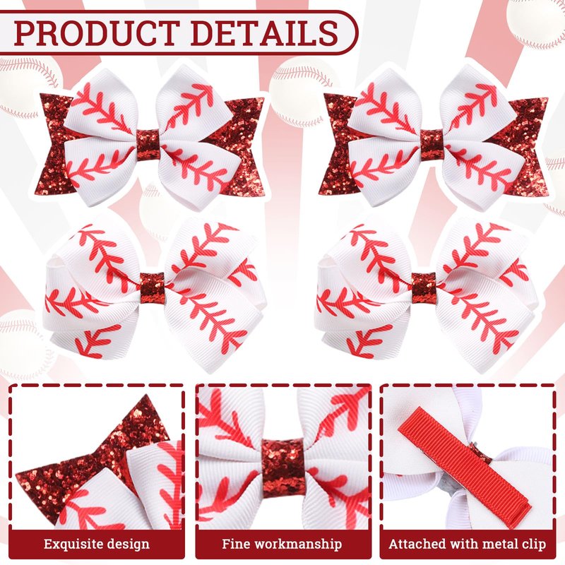 - Package Includes: 4pcs baseball cheerleading hair clips of 2 styles, 2pcs of each style, sufficient for you to spare or replacement, meeting your different holiday dressing needs.