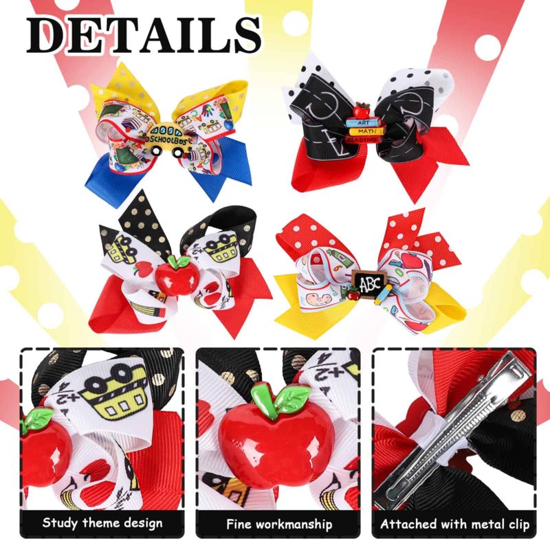 - Material & Size - The back to school season bow is handmade from premium ribbon grosgrain and comes with metal alligator hair clips to securely hold your hair in place. Size is 10cm/4inch long and 7.5cm/3inch wide, suitable for girls of most ages.