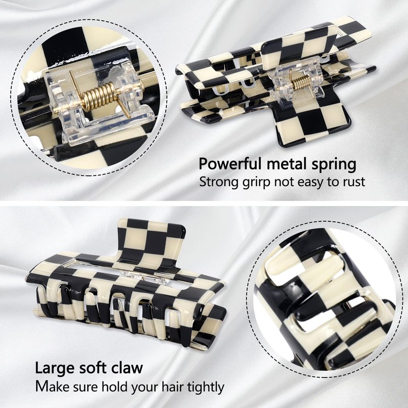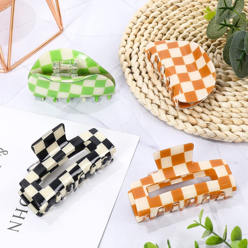 - Checkered Style – All the hair claw clips are designed in checkered style, and have 3 different colors, this design is super fashionable and unique, rich colors offer more choices for you to match your outfits.