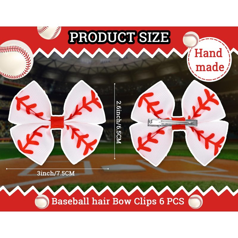 - Cute Design - The baseball hair clips are designed with red and white color, vivid pattern, and cute bow shape, giving girls a gentle and lovely image and raising people’s interest in sports meeting.