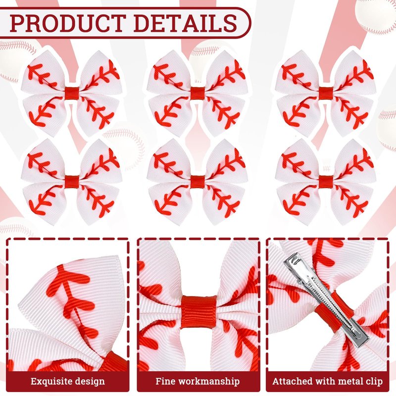 - Package Includes - 6pcs baseball cheerleading hair clips in white and red color, sufficient for you to spare or replacement, meeting your different holiday dressing needs.