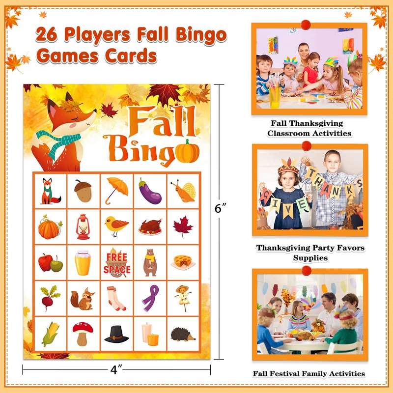 - 【Perfect for Thanksgiving Party Favors】: Autumn bingo game cards are suitable for both children and adults of all ages playing. Perfect for Thanksgiving party favors supplies, fall autumn party activities,school classroom activities, family gathering activities or other occasions.