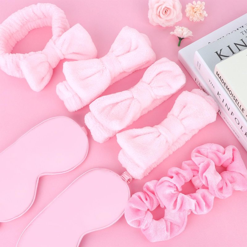 - 【Wide Occasions】The pink colors give these party favors an elegant look. Perfect for spa party, birthday, bachelorette, slumber, sleepover party, wedding, bridal shower, hen party, pajama parties. The spa headbands set are also functional for daily use, such as washing face, makeup, mask routine, yoga, taking shower, Christmas stocking stuffers.